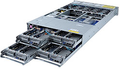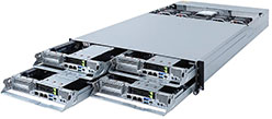 2U - 4 nodes with rear access to the node trays, 8x 2.5" U.2 and 16 x SATA/SAS hot-swappable HDD/SSD bays, 8x Low profile PCIe Gen3 expansion slots, redundant power option