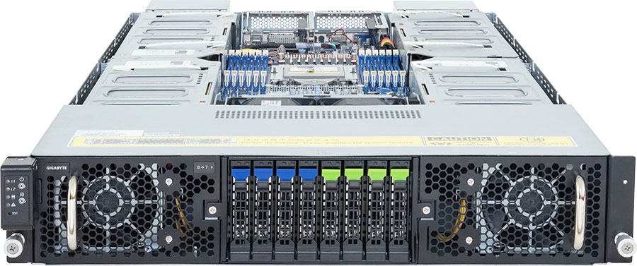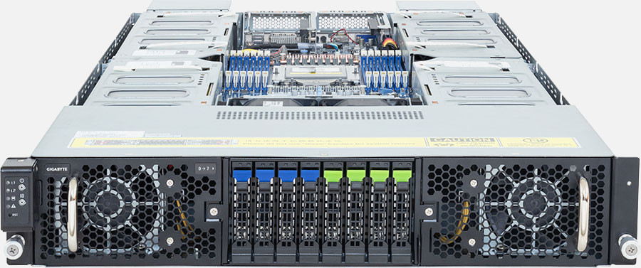 The CyberServe EPYC EP1 208-4NVMe 8GPU G5 boasts high density storage and ultimate energy efficiency, catering for up to 8x High-Performance 2.5" SSD or Hard Drives