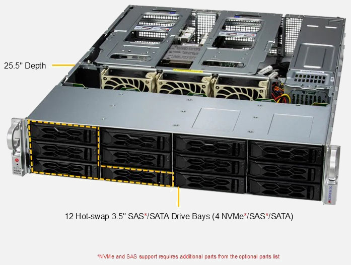 This system can be configured with SATA drives for cost-effective 12gb/s storage.