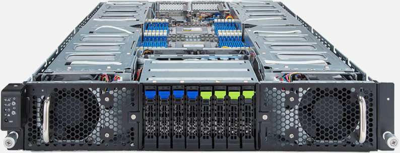 Dual AMD EPYC 9004 series processors, Supports up to 8x double slot GPU cards, 2x 10Gb/s BASE-T LAN ports (Broadcom® BCM57416), 4x 2.5" SATA/SAS & 4 x 2.5" NVMe/SATA/SAS hot-swappable drive bays.