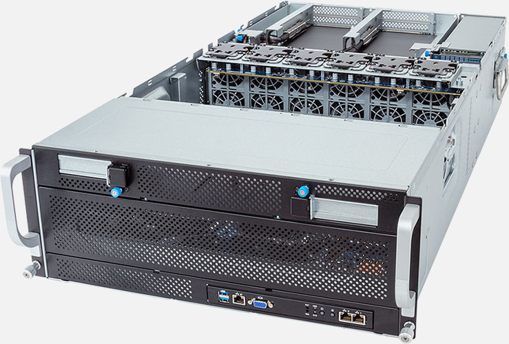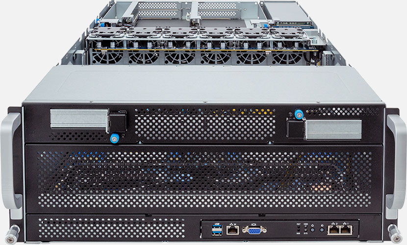 Dual AMD EPYC 9004 series processors, Supports up to 8x double slot GPU cards, 2x 10Gb/s BASE-T LAN ports (Intel® X710-AT2).