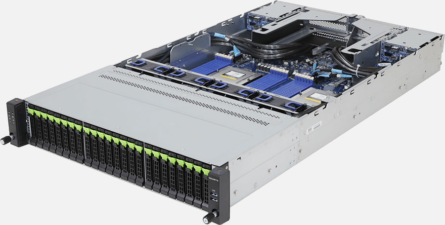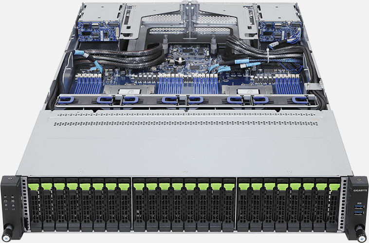 The Gigabyte R283-Z96 (6NR283Z96DR000AAE1) can be configured with hot-swap drives, allowing you to remove and replace the drives whilst the system is running with no interruption.