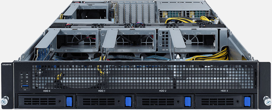 The Gigabyte G242-P32 (6NG242P32MR-00-1) can be configured with hot-swap drives, allowing you to remove and replace the drives whilst the system is running with no interruption.