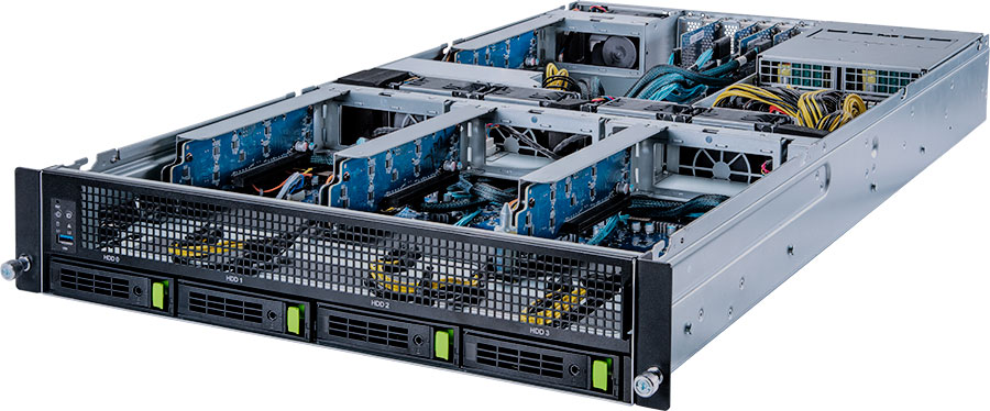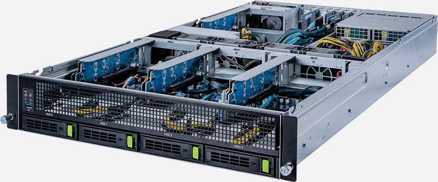 Single Ampere® Altra series processors, 4x FHFL PCIe Gen4 x16 slots for GPUs , 2x 1Gb/s LAN ports (Intel® I350-AM2), 1600W redundant power supply, 4x 3.5"/2.5" NVMe hot-swappable drive bays.