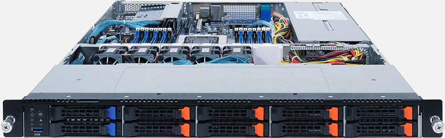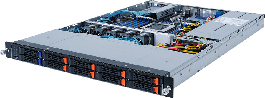 Single Ampere® Altra series processors, 1x FHHL PCIe Gen4 x16 slot, 2x 1Gb/s LAN ports (Intel® I350-AM2), 1100W redundant power supply, 8x 2.5" NVMe & 2x 2.5" SATA hot-swappable drive bays.