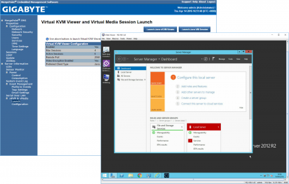 For remote server management, the motherboard's Aspeed AST2400 BMC chip provides plenty of information about critical components along with full OS remote control tools and direct access to BIOS upgrades. The server's cooling fans were emitting a noisy 72dB on the 'Energy Saving' mode but we used the BMC console to manually slow them down to 57dB and keep a close eye on CPU temperatures at the same time.