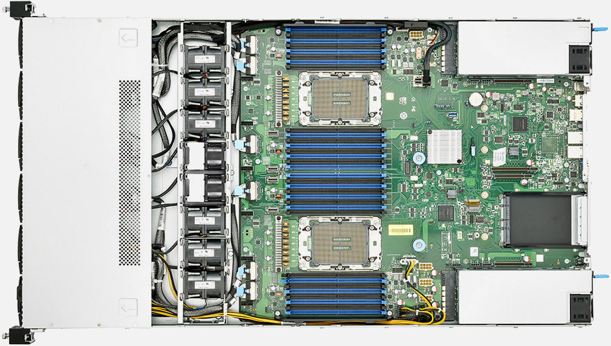 1U2S Cloud Server, 12 SFF. 2x FH/HL PCIe Gen 5.0 x16 slots. 12x NVMe hot swap drive bays, 1200W Redundant power supply.
