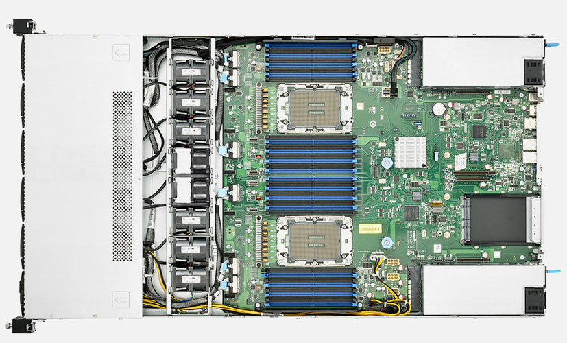 1U2S Cloud Server, 12 SFF. 2x FH/HL PCIe Gen 5.0 x16 slots. 12x NVMe hot swap drive bays, 1200W Redundant power supply. Dual 10GbE Base-T LAN.
