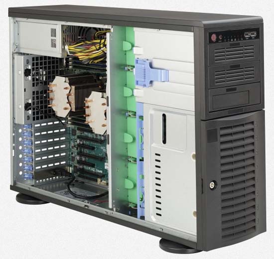 The Supermicro SuperWorkstation 7047A-T features hot-swap hard drives, giving you more flexibility and allowing you to remove drives without having to shut down the system.