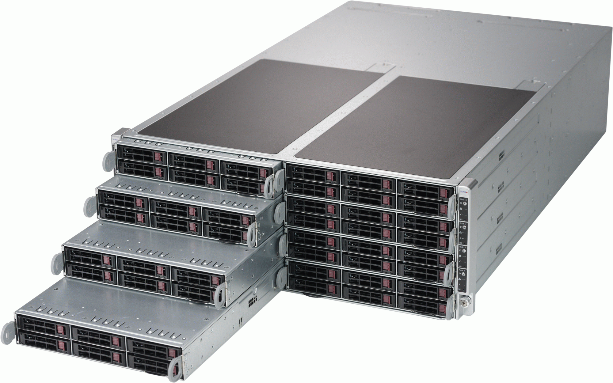 This server is a 4U FatTwin, a flexible to configure, easy to maintain, cost effective and reliable server that is capable of superb performance with low power consumption.