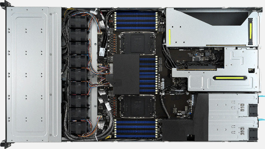 Dual 4th Gen Intel Xeon Scalable Processors, Supports 1x double slot GPU cards, Dual 1200W redundant power supply, 12x 2.5" NVMe/SATA/SAS hot-swappable drive bays.