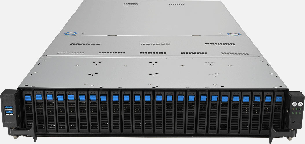 Dual 4th Gen Intel Xeon Scalable Processors, Supports up to 1x double slot GPU cards, Dual 1600W redundant power supply, 24x 2.5" NVMe/SATA/SAS hot-swappable drive bays.