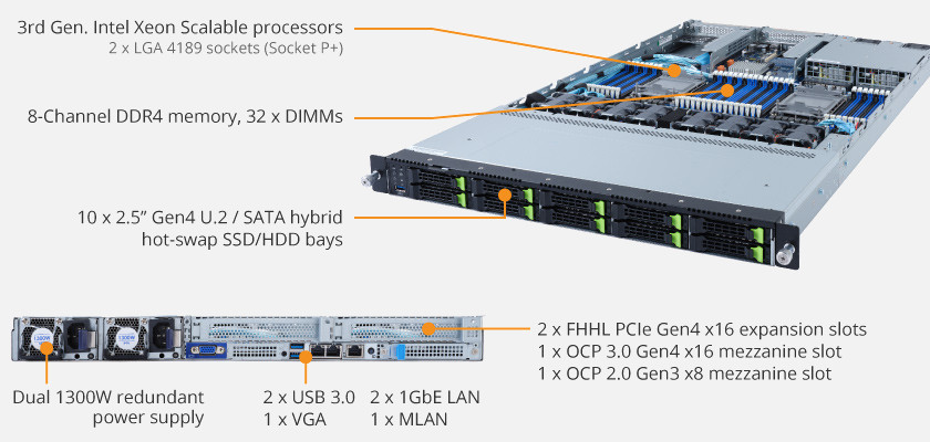 3rd Gen. Intel® Xeon® Scalable DP Server System - 1U 10-Bay Gen4 NVMe. Dual 1Gb/s LAN and Redundant Power Supply. Ideal for Networking.