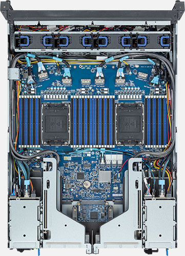 Dual 4th Gen Intel Xeon Scalable Processors, 6x FHHL PCIe Gen5 x16 slots, 2x 1Gb/s LAN ports (Intel® I350-AM2), Dual 1600W Redundant PSU, 4x 2.5" NVMe/SATA/SAS hot-swappable drive bays.
