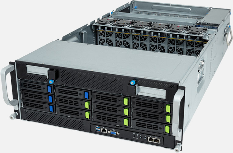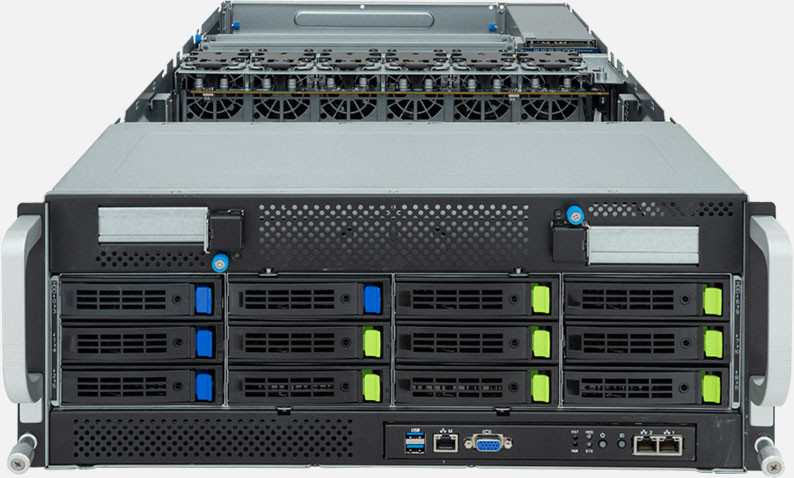 Dual 4th Gen Intel Xeon Scalable Processors, Supports up to 8x double slot GPU cards, 2x 10Gb/s BASE-T LAN ports (Intel® X710-AT2), 8x 3.5"/2.5" SATA/NVMe & 4x 3.5"/2.5" SATA hot-swappable drive bays.