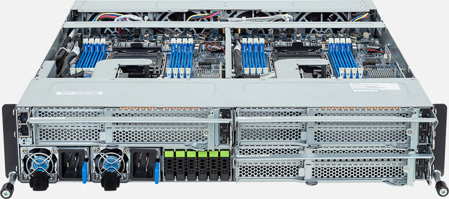 The Gigabyte H223-S10 (6NH223S10DR000ABP1) can be configured with hot-swap drives, allowing you to remove and replace the drives whilst the system is running with no interruption.