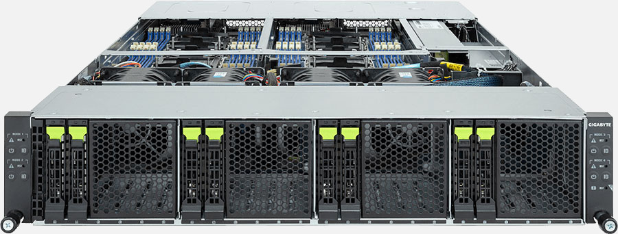 The Gigabyte H263-S64 (6NH263S64DR000ABN1) can be configured with hot-swap drives, allowing you to remove and replace the drives whilst the system is running with no interruption.