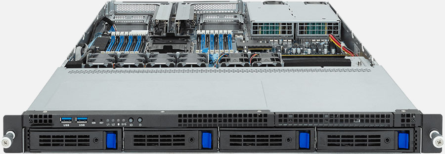 Single 4th Gen Intel Xeon Scalable Processors, 2x FHHL PCIe Gen5 x16 slot, 1x 1Gb/s LAN ports (Intel® I210-AT), Rundundant 800W power supply, 4x 3.5"/2.5" SATA/SAS hot-swappable drive bays.