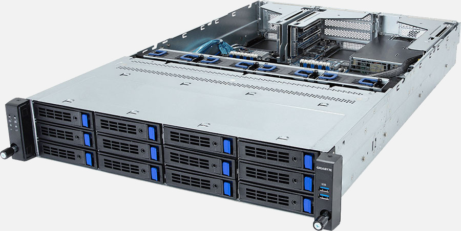 Single 4th Gen Intel Xeon Scalable Processors, Supports up to 3x double slot GPU cards, 2x 1Gb/s LAN ports (Intel® I210-AT), 12x 3.5"/2.5" SATA/SAS hot-swappable drive bays.