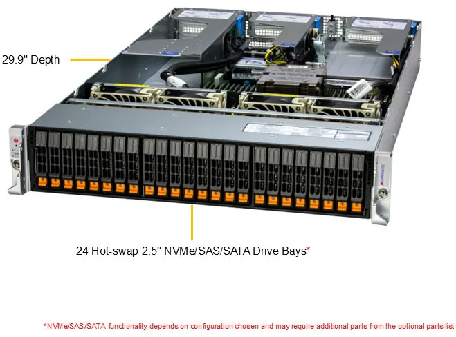 2U, Dual AMD EPYC 9004 Processors, Supports 3x Dual Slot GPU Cards, Ideal for Video Production, Virtualisation & 2000W Reduandant PSU, Supports GRAID, 16x NVMe & 8x NVMe/SATA/SAS Hot Swap Drive Bays.