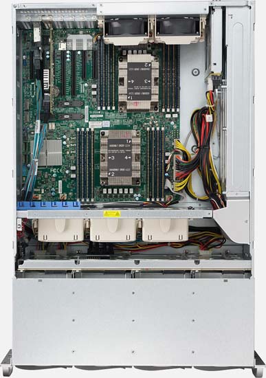 This system is capable of supporting up to 12 DIMMS per CPU. That’s a significant advancement on the previous limit, which was 9 DIMMS per CPU.