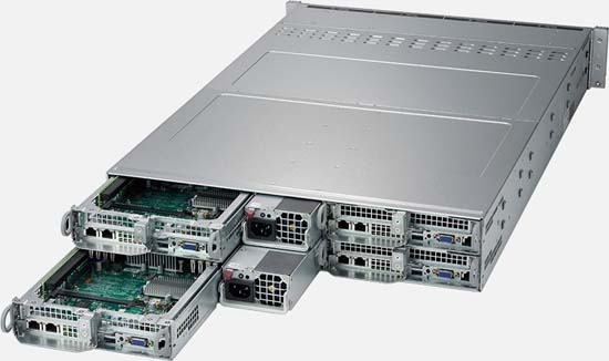 Four Nodes in 2U. Ideal for Compute Intensive Applications, HPC, Data Center, Enterprise Server, Hyperscale / Hyperconverged. Redundant Power Option.