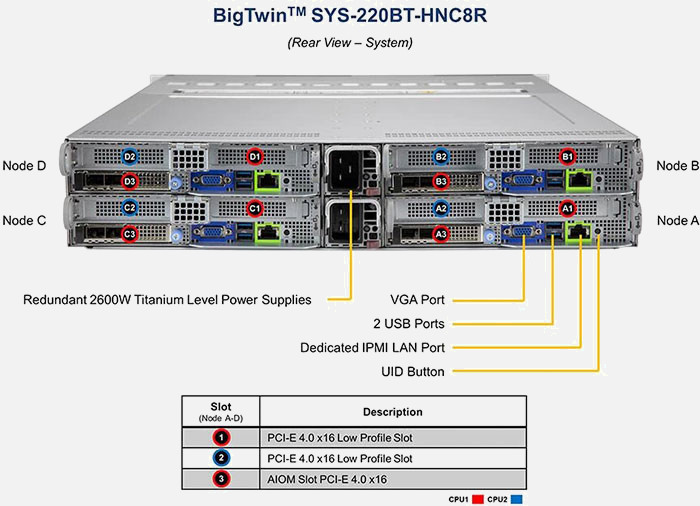 The Supermicro BigTwin SuperServer SYS-220BT-HNC8R | SYS-220BT-HNC8R boasts 8 PCI-Express slots for expandability, and as with all of our servers it can be fully customised online