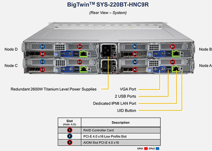 The Supermicro BigTwin SuperServer SYS-220BT-HNC9R | SYS-220BT-HNC9R boasts 4 PCI-Express slots for expandability, and as with all of our servers it can be fully customised online