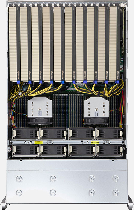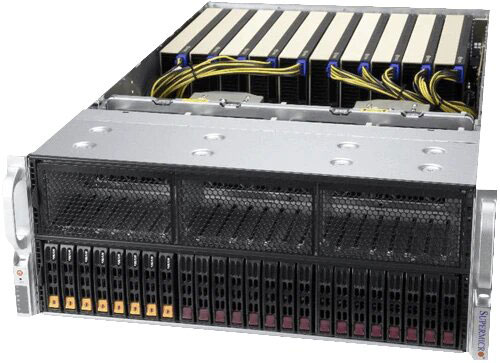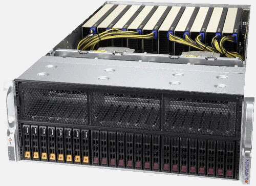 Perfect for HPC and AI/Deep Learning Training. 12 PCI-E Gen 4.0 X16 FHFL Slots, 24x 2.5" Hot-swap drive bays. 4x 2000W redundant Titanium level power supplies