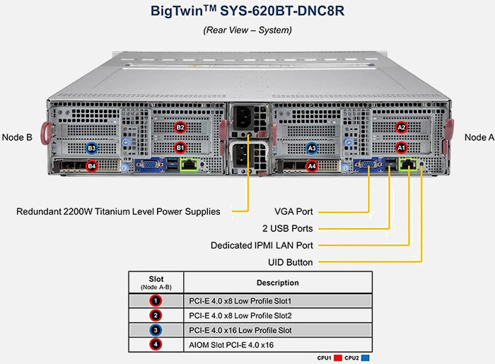 The Supermicro BigTwin SuperServer SYS-620BT-DNC8R | SYS-620BT-DNC8R boasts 6 PCI-Express slots for expandability, and as with all of our servers it can be fully customised online