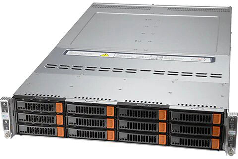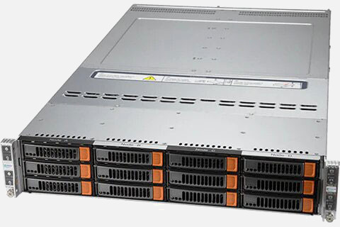 Optimised for hyperconverged infrastructure, scale-out file storage. Four hot-pluggable systems (nodes) in a 2U form factor. Redundant power supply.