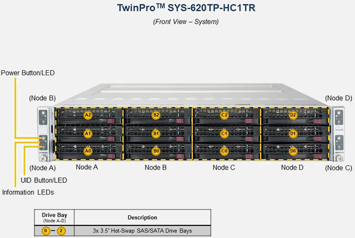 The Supermicro Twin SuperServer SYS-620TP-HC1TR | SYS-620TP-HC1TR features hot-swap hard drives, giving you more flexibility and allowing you to remove drives without having to shut down the system.