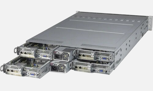 4 node solution optimised for HPC, hyper-converged infrastructure and big data. 2x PCI-E 4.0 x16 and 1x PCI-E 4.0 x8 slots per node. Redundant power.