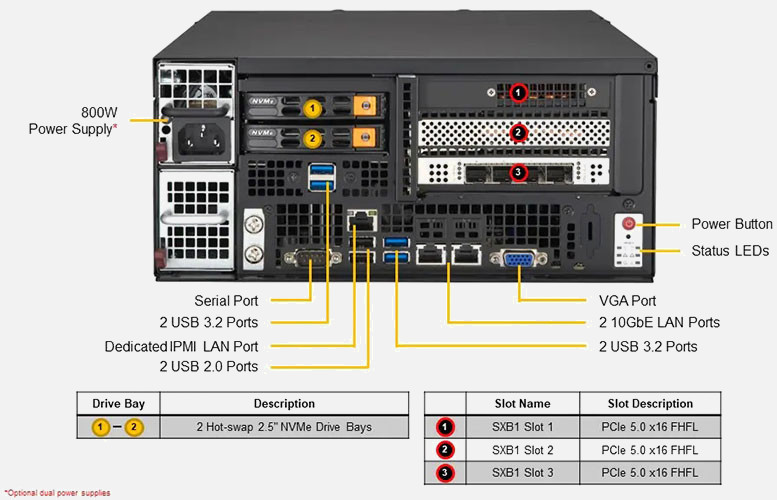 Optimised for Multi-Access Edge Computing (MEC) and AI. 3x PCI-E 5.0 x16 slot, 2x 10 Gigabit Ethernet Ports.