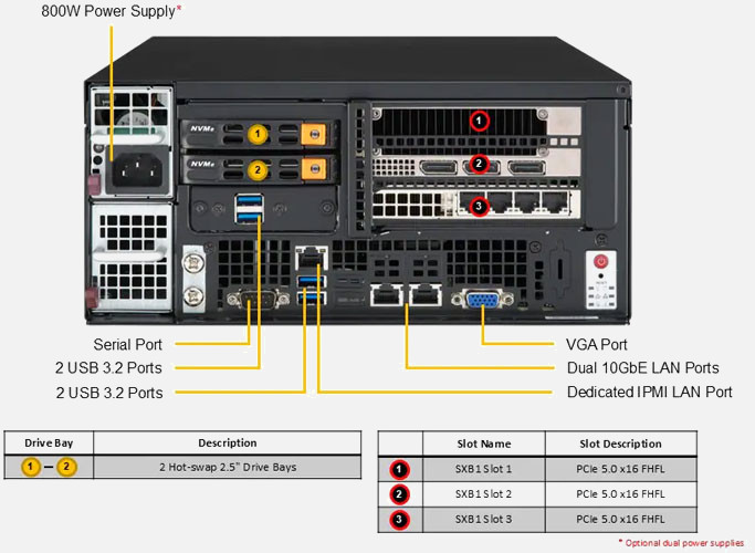Single Intel Xeon 6 6700 series Processor. Ideal for Virtualisation, Cloud Computing and AI Inference. 1x PCI-E 5.0 x16 FHHL slot, 1x PCI-E 5.0 x16 FHFL Slot. 1200W Redundant Power Supply, 8x 2.5" NVMe/SATA/SAS Hot swap drive bays.