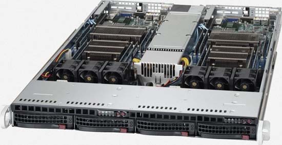This server was designed to increase computing density while reducing cost, as well space and energy requirements. This 1U Twin supports Intel Xeon Scalable processors.