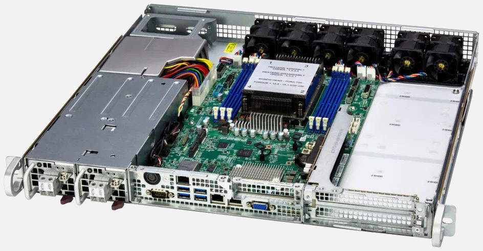 Ideal for Virtualisation, Edge/Cloud Computing Services server. Supports 1x Dual-Slot GPU Card. 2x PCIe 5.0 x16 FHFL & 1x PCIe 5.0 x16 LP, 800W DC Redundant power supply, 2x 2.5" NVMe/SATA/SAS internal drive bays.