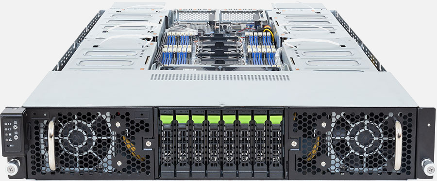 The CyberServe Xeon SP2-208G 8GPU G6 boasts high density storage and ultimate energy efficiency, catering for up to 8x High-Performance 2.5" SSD or Hard Drives