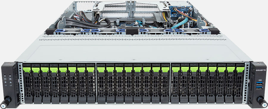 The CyberServe Xeon SP2-224G G6 boasts high density storage and ultimate energy efficiency, catering for up to 24x High-Performance 2.5" SSD or Hard Drives